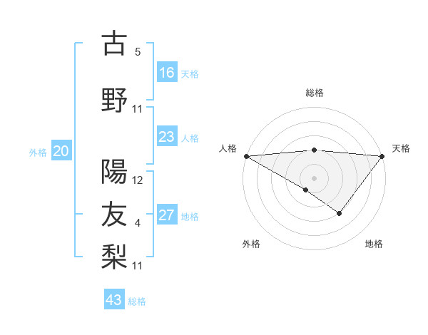 古野 陽友梨さんを姓名の画数から五運を鑑定
