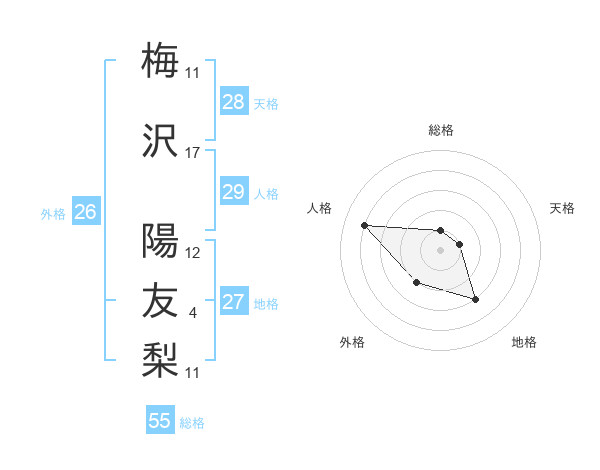 梅沢 陽友梨さんを姓名の画数から五運を鑑定