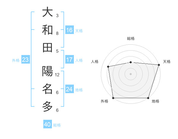 大和田 陽名多さんを姓名の画数から五運を鑑定
