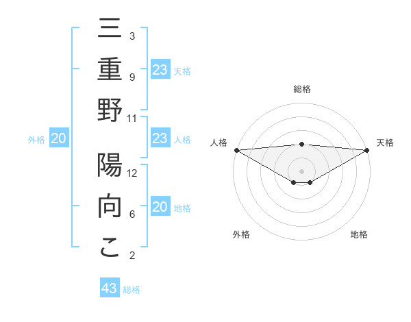 三重野 陽向こさんを姓名の画数から五運を鑑定