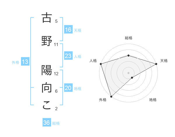 古野 陽向こさんを姓名の画数から五運を鑑定