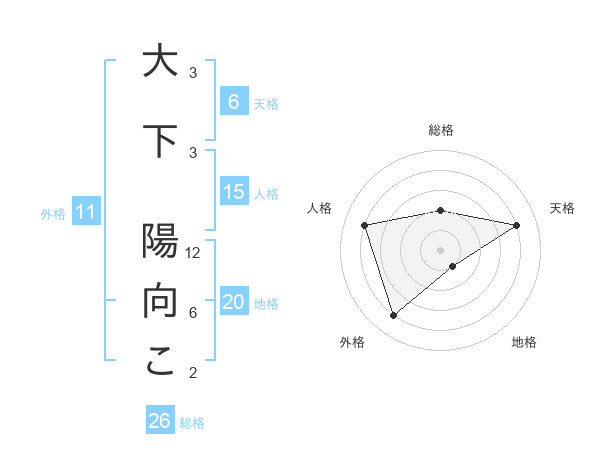大下 陽向こさんを姓名の画数から五運を鑑定