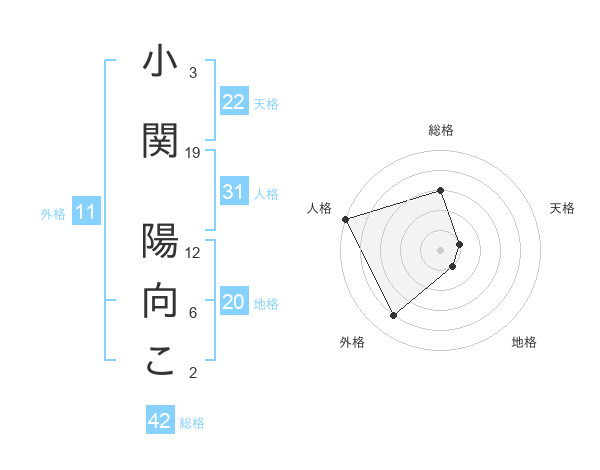 小関 陽向こさんを姓名の画数から五運を鑑定