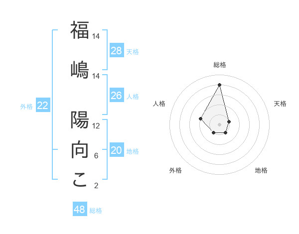 福嶋 陽向こさんの外格は22画の1点!