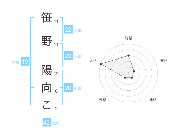 笹野 陽向こさんを姓名の画数から五運を鑑定
