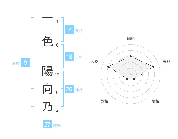 一色 陽向乃さんを姓名の画数から五運を鑑定