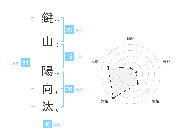 鍵山 陽向汰さんの外格は31画の5点!