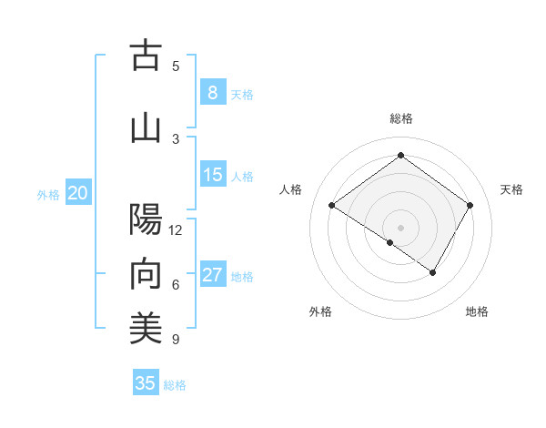 古山 陽向美さんを姓名の画数から五運を鑑定
