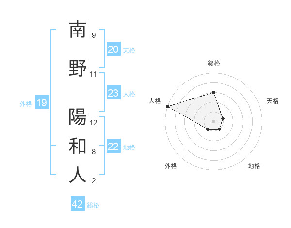 南野 陽和人さんの天格は20画の1点!