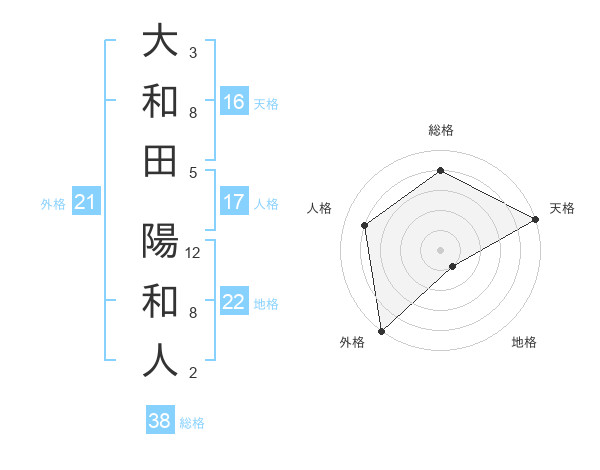 大和田 陽和人さんを姓名の画数から五運を鑑定