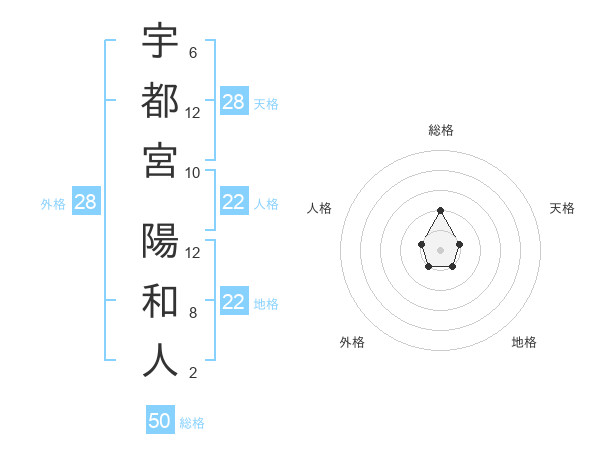 宇都宮 陽和人さんを姓名の画数から五運を鑑定