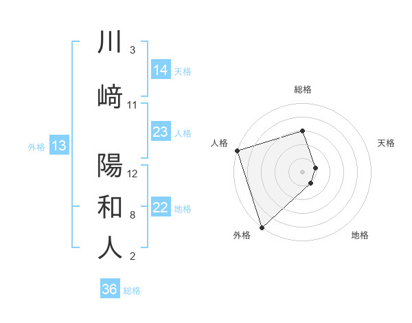 川﨑 陽和人さんを姓名の画数から五運を鑑定