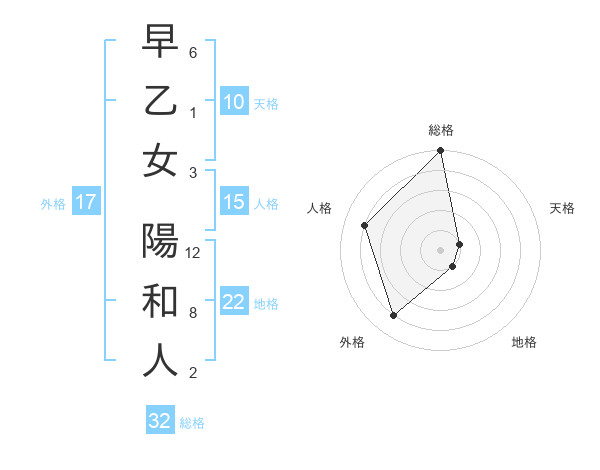 早乙女 陽和人さんを姓名の画数から五運を鑑定