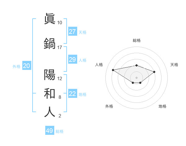 眞鍋 陽和人さんを姓名の画数から五運を鑑定