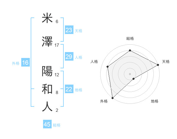 米澤 陽和人さんの総格は45画の4点!