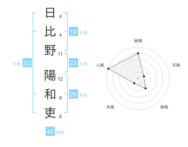日比野 陽和吏さんを姓名の画数から五運を鑑定