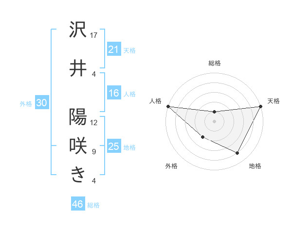 沢井 陽咲きさんを姓名の画数から五運を鑑定