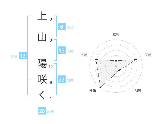 上山 陽咲くさんの外格は13画の5点!