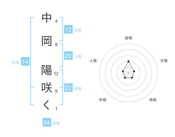 中岡 陽咲くさんの天格は12画の1点!