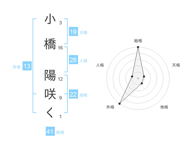 小橋 陽咲くさんを姓名の画数から五運を鑑定
