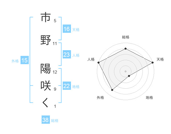 市野 陽咲くさんの総格は38画の4点