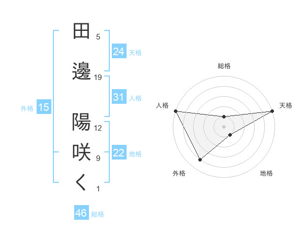 田邊 陽咲くさんの天格は24画の5点!