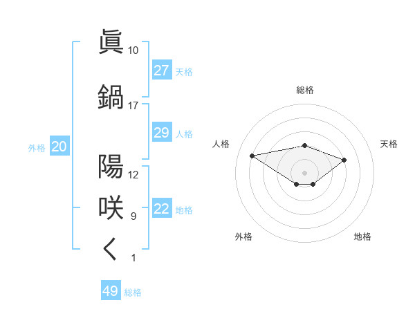 眞鍋 陽咲くさんを姓名の画数から五運を鑑定