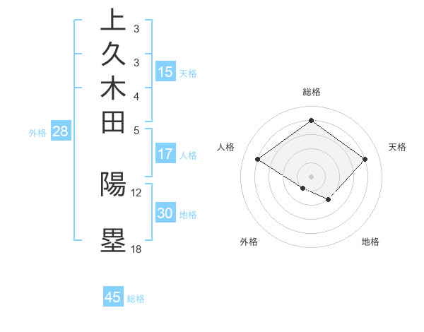 上久木田 陽塁さんを姓名の画数から五運を鑑定