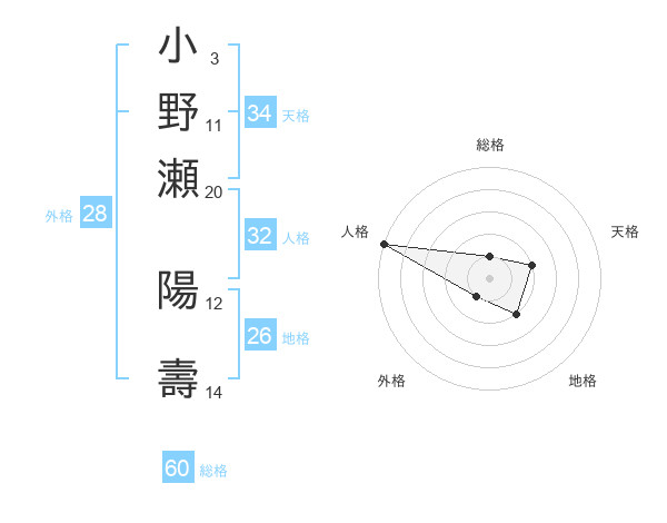小野瀬 陽壽さんの総格は60画の1点!