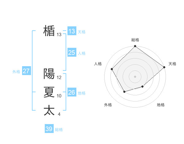 楯 陽夏太さんを姓名の画数から五運を鑑定