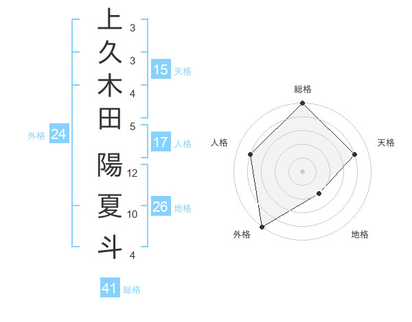 上久木田 陽夏斗さんを姓名の画数から五運を鑑定