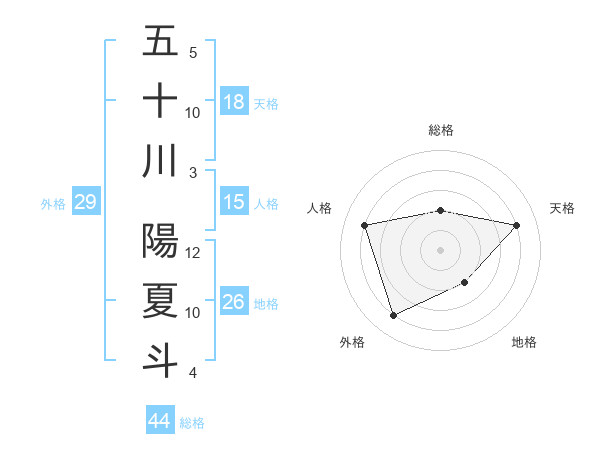 五十川 陽夏斗さんを姓名の画数から五運を鑑定