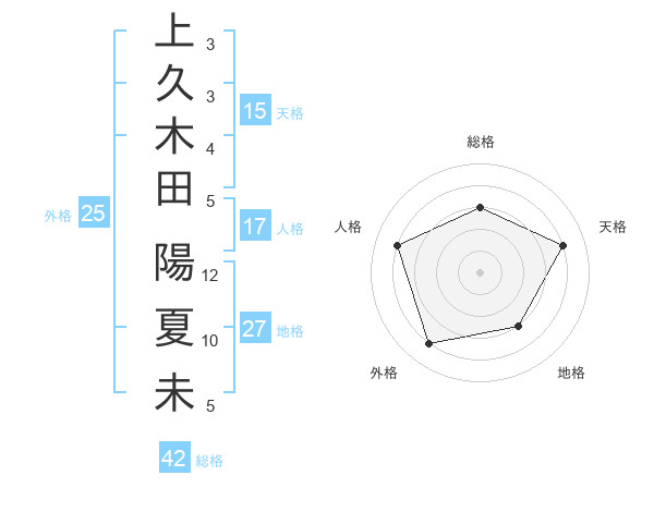 上久木田 陽夏未さんを姓名の画数から五運を鑑定