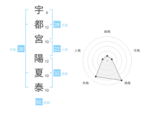 宇都宮 陽夏泰さんの地格は32画の5点!