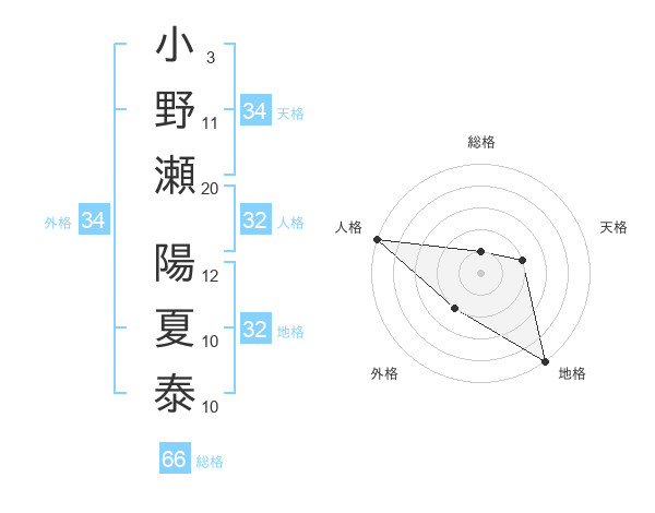 小野瀬 陽夏泰さんを姓名の画数から五運を鑑定