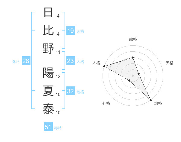 日比野 陽夏泰さんの総格は51画の3点!