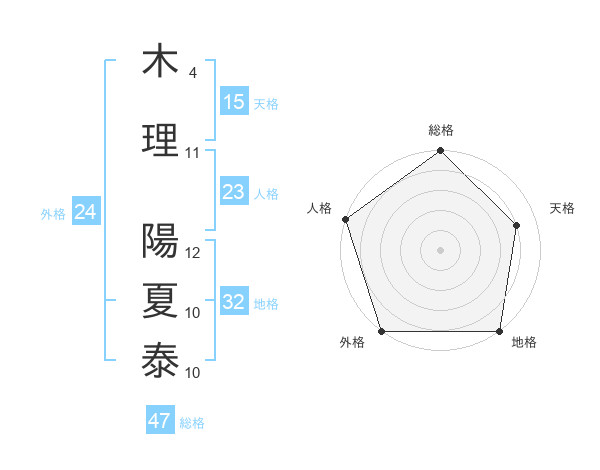 木理 陽夏泰さんを姓名の画数から五運を鑑定