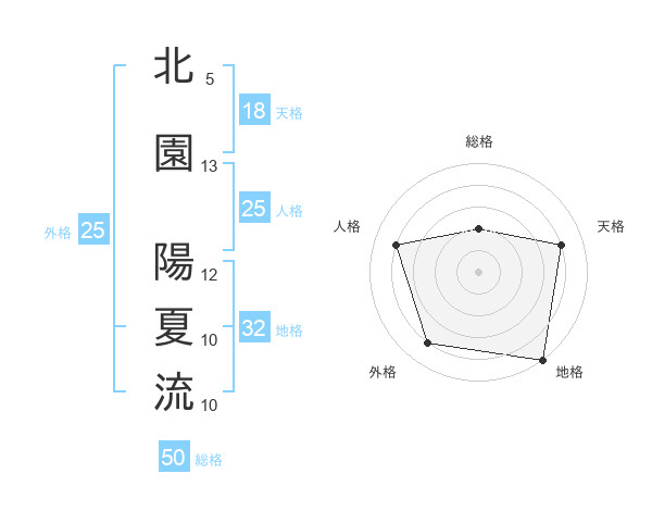 北園 陽夏流さんを姓名の画数から五運を鑑定