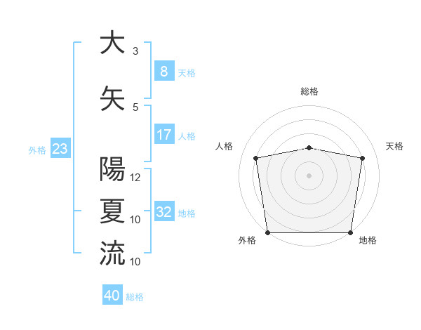 大矢 陽夏流さんの外格は23画の5点!