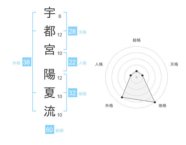 宇都宮 陽夏流さんを姓名の画数から五運を鑑定
