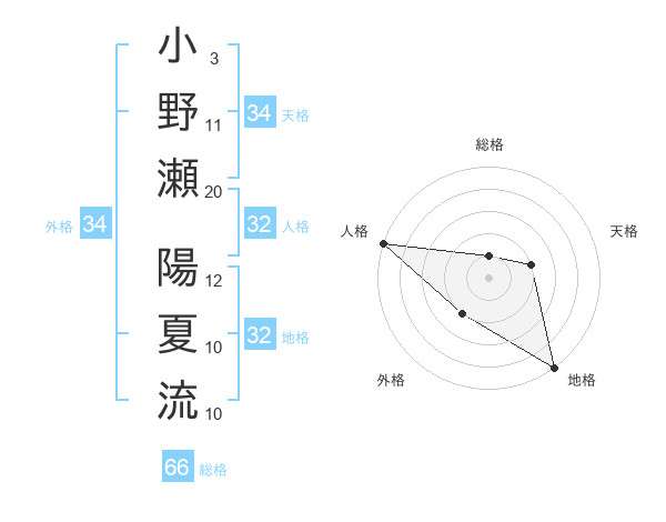 小野瀬 陽夏流さんを姓名の画数から五運を鑑定