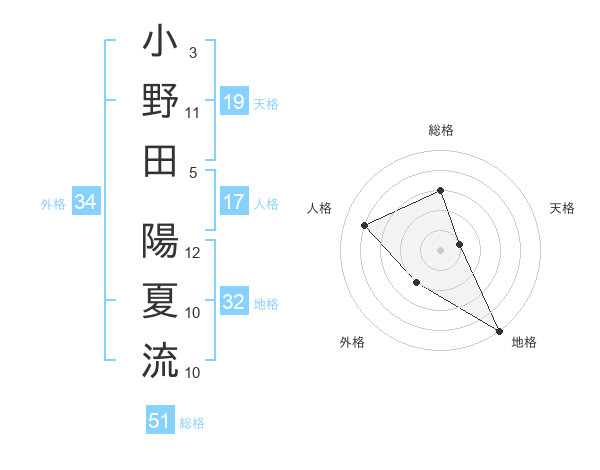 小野田 陽夏流さんを姓名の画数から五運を鑑定