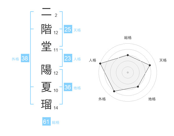 二階堂 陽夏瑠さんの外格は38画の4点!