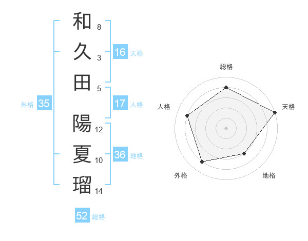和久田 陽夏瑠さんを姓名の画数から五運を鑑定