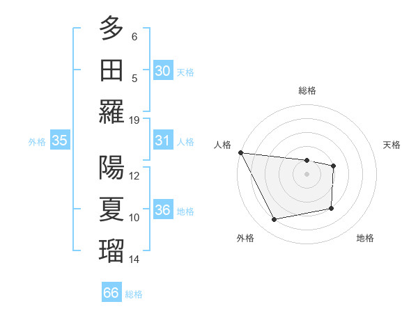 多田羅 陽夏瑠さんを姓名の画数から五運を鑑定