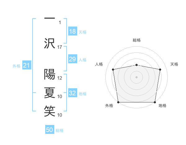 一沢 陽夏笑さんの総格は50画の2点
