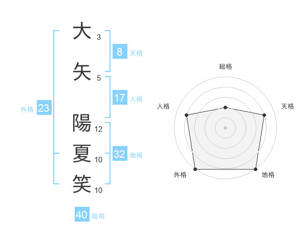 大矢 陽夏笑さんの外格は23画の5点!
