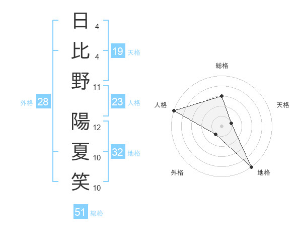 日比野 陽夏笑さんを姓名の画数から五運を鑑定