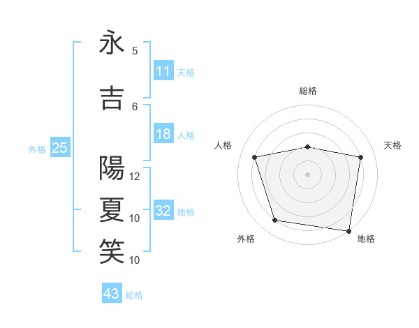 永吉 陽夏笑さんの天格は11画の4点!