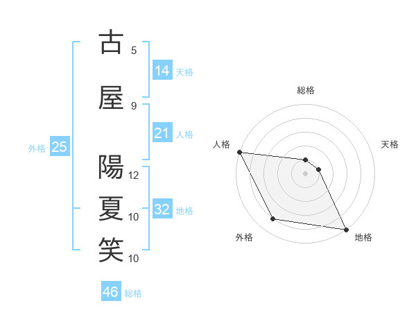 古屋 陽夏笑さんを姓名の画数から五運を鑑定
